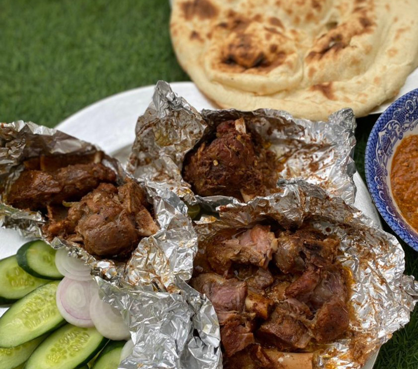 Juicy, spice-marinated mutton slow-roasted in foil to lock in flavor—tender, aromatic, and irresistibly rich in every bite.