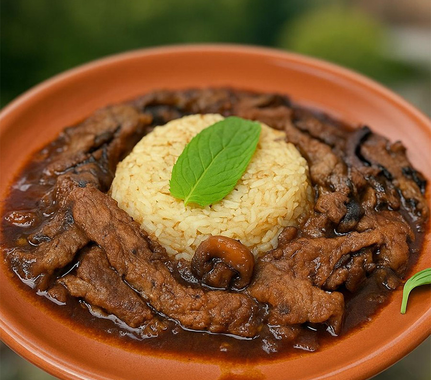 Tender beef strips stir-fried with fresh basil, garlic, and chili—served over fluffy rice for a bold, fragrant, and satisfying bite.