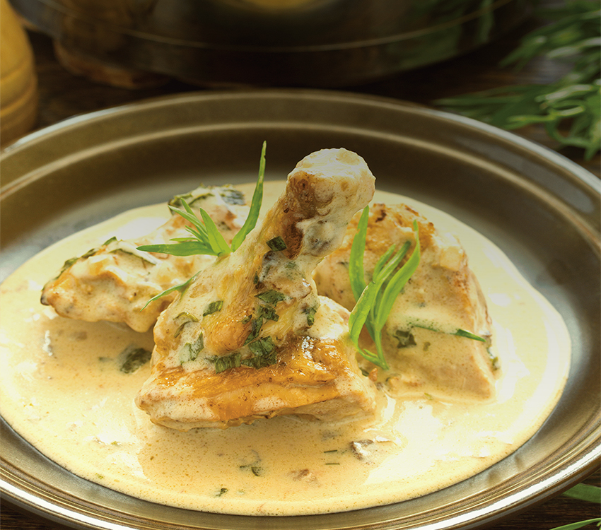 Juicy grilled chicken served with creamy tarragon sauce and fluffy rice—herby, rich, and full of comforting flavor.