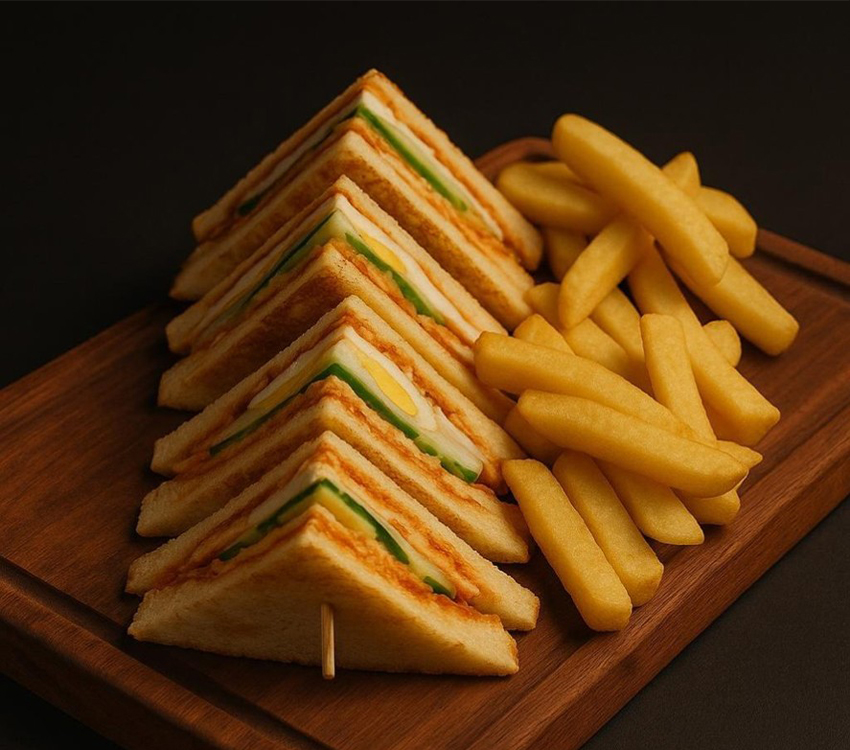 Stacked with juicy chicken, crispy lettuce, fresh veggies, and creamy mayo—served with golden fries for the ultimate comfort bite.
