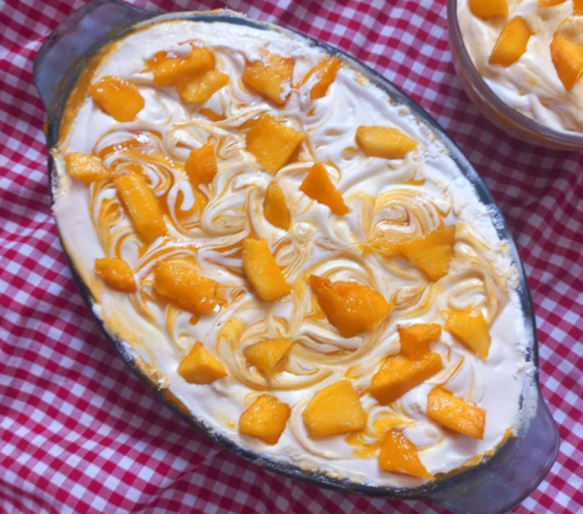 Light, creamy delight layered with butter puff biscuits and juicy fresh mango chunks—refreshing, smooth, and full of tropical flavor.