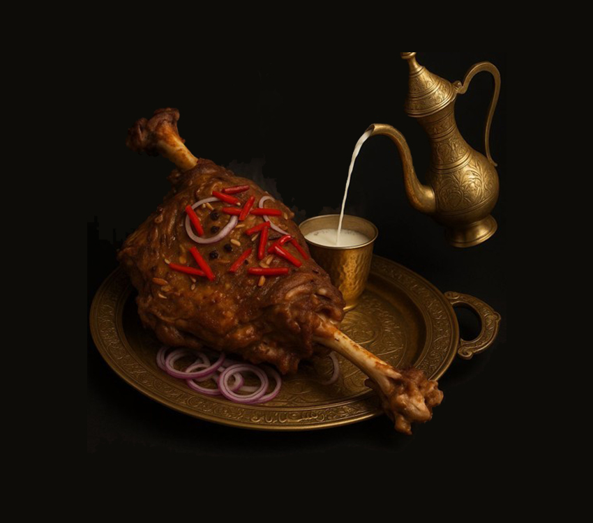 The “Khaddi” Pit – The dish gets its name from the pit dug into the ground where the whole lamb or goat is roasted. Stuffed with fragrant spiced rice, almonds, and raisins, the meat turns irresistibly tender, infused with deep smoky flavor and rich aromas. One of our Signature dish for Royal gatherings.